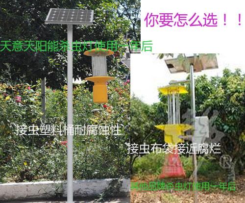 殺蟲燈在蔬菜種植的應(yīng)用以每年4-11月為宜,每天的開燈時(shí)間為晚上的七點(diǎn),5-7月份主要誘殺小地老虎和小菜蛾為主,8-10月份誘殺甜菜夜蛾和斜紋夜蛾為主。天意新能源的殺蟲燈接蟲桶比一般的疥蟲帶要耐用,夏天高溫季節(jié)害蟲繁多,效果特別明顯,以利誘殺害蟲。