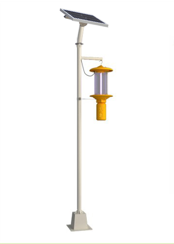 太陽能殺蟲燈是利用太陽能電池板作為用電來源,其將白天太陽能發的電貯存起來,晚上放電給殺蟲燈具,供其工作。殺蟲燈具是利用昆蟲具有較強的趨光、趨波、趨色、趨性的特性原理,確定對昆蟲的誘導波長,研制專用光源,利用放電產生的低溫等離子體,紫外光輻射對害蟲間生的趨光興奮效應,引誘害蟲撲向燈的光源,光源外配置高壓擊殺網,殺死害蟲,使害蟲落下專用的接蟲袋內,達到滅殺害蟲的目的。