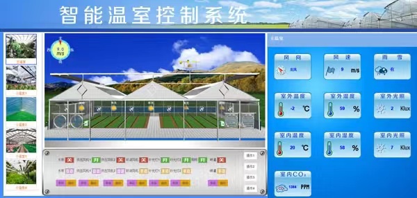 通過控制系統,可以對農業生產區域內各種設備運行條件進行設定,當傳感器采集的實時數據結果超出設定的閾值時,系統會自動通過繼電器控制設備或模擬輸出模塊對溫室大棚自動化設備進行控制操作,如自動噴灑系統、自動換氣系統等,確保溫室內為植物生長適宜環境。